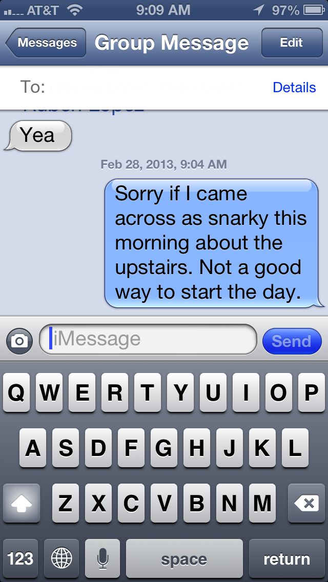 Think about that. I have to text my kids to say, “I’m sorry.”